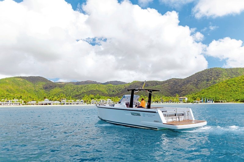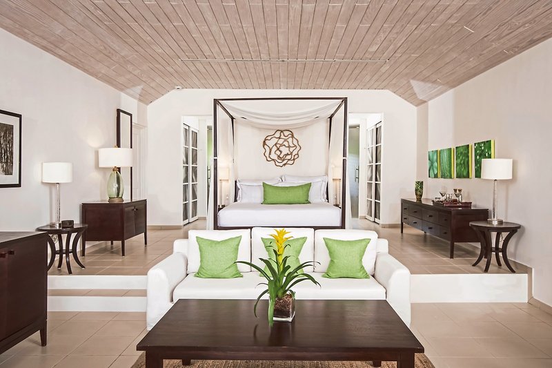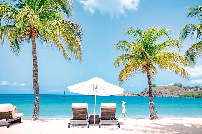 Schlichte Eleganz, klare Linien und helle Farben geben dem Resort einen besonderen Charme. Umgeben von einer malerischen Hügellandschaft liegt es an einer der schönsten Buchten Antiguas.