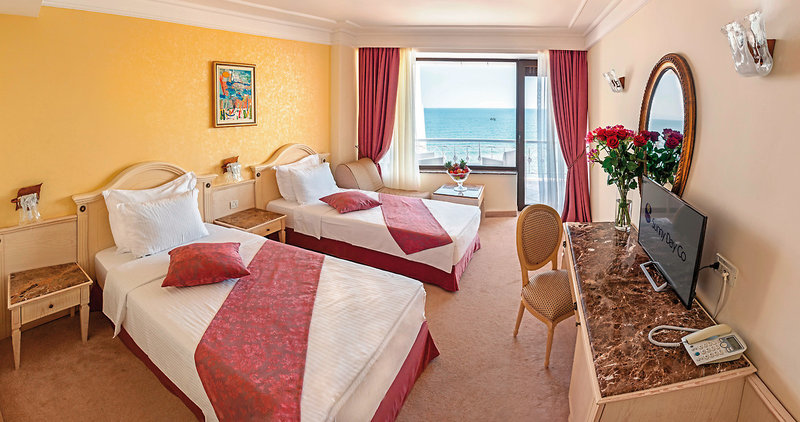 - 26-30 m², dvojlôžková izba, výhľad na more, nefajčiarska, 2 samostatné postele, 1 kúpeľňa, vaňa, WC, fén, koberec, klimatizácia, chodba, minibar (za poplatok), trezor (za poplatok), 1 TV (satelitná TV, nemecké a miestne kanály), Wi-Fi, rýchlovarná kanvica, káva/čaj, zariadený balkón, výmena posteľnej bielizne, výmena uterákov