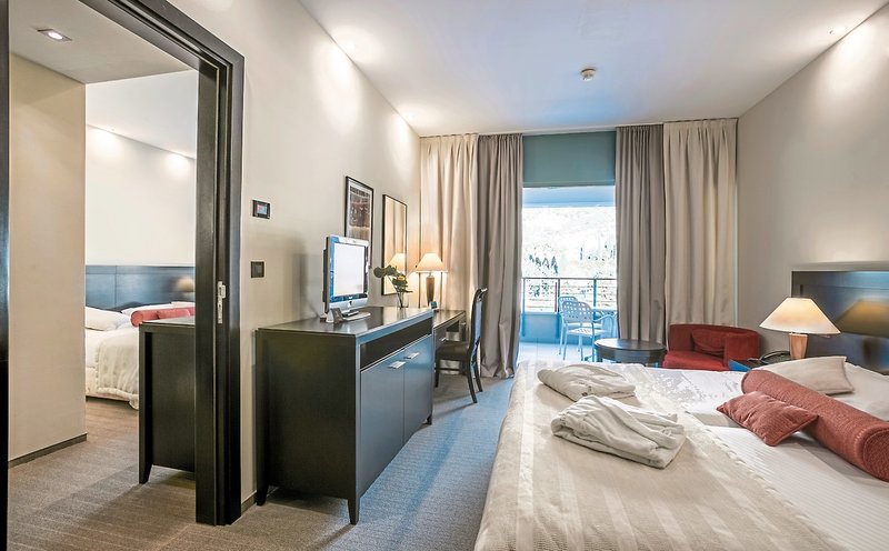 - 46-50 qm, Familien, mit Verbindungstür, Bergblick, Bettwäsche, Handtücher und Matratzen aus 100% Bio-Baumwolle, separates Schlafzimmer, Badewanne, Bademantel, Haartrockner, Klimaanlage, Minibar kostenpflichtig, Safe, TV, Balkon