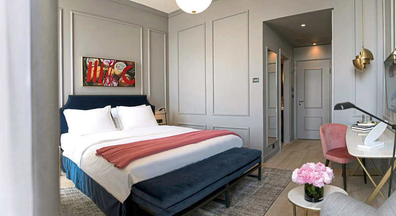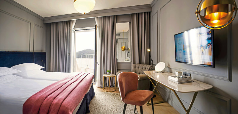 Die Zimmer: Die 158 elegant eingerichteten Zimmer und Suiten befinden sich in der Villa Odak, dem historischen Teil des Hotels oder im angrenzenden Neubau Main Tower. Alle mit Bad und Dusche, Föhn, Bademantel, Telefon, Flachbild-TV (mit Pay-TV und deutschem Programm), WLAN, Parkettfußboden, Sitzecke, Sofa, Safe, Minibar und Klimaanlage.