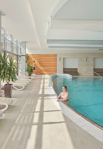 - Saunová časť: organická sauna, fínska sauna, infra sauna, parný kúpeľ, hammam, tepidárium