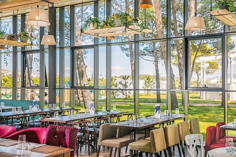 Als Teil der großzügigen Ferienanlage Amadria Park. Die Lage direkt am langen Familienstrand und die Nähe zum Aquapark locken Familien nach Sibenik.
