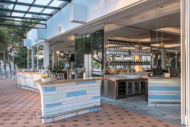 - hoteleigene Strandbar, Lobbybar, Poolbar, Bar mit Terrasse