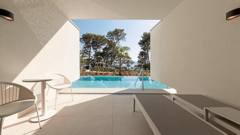 Das modern ausgestattete, hübsche Hotel liegt am Hang mit Postkarten-Ausblick auf das Meer. Die Anlage ist üppig begrünt, unterhalb des Hauses liegen das Nebengebäude Mala Berulia und der Strand.