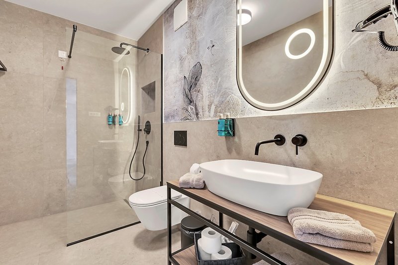 - 26-30 m2, dvojlôžková, klasická, renovovaná, sprcha na úrovni podlahy, fén, klimatizácia, minibar za poplatok, trezor, TV, káva/čaj, balkón