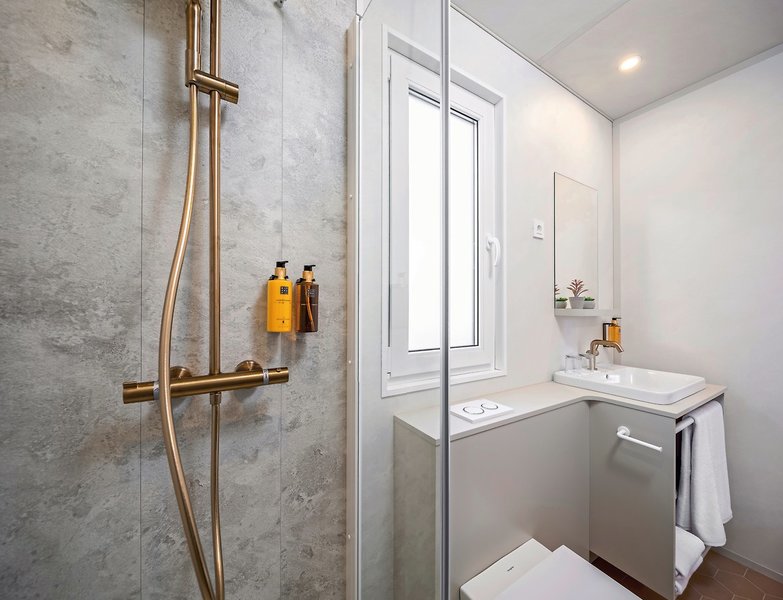 - 26-30 m², mobilný domček, 2 samostatné spálne, obývacia izba/spálňa, 2 samostatné postele, manželská posteľ, rozkladacia pohovka, 2 kúpeľne, sprchovací kút, WC, klimatizácia, trezor, TV, kuchynský kút, plynový/elektrický sporák (4 horáky), umývačka riadu, rýchlovarná kanvica, kávovar, chladnička, terasa 16-20 m² (zariadená), vírivka, posteľná bielizeň zdarma, uteráky zdarma, záverečné upratovanie (už zahrnuté v celkovej cene)