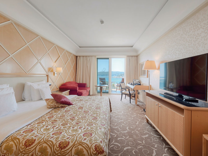 - 41-45 m2, dvojlôžková, superior, výhľad na more, posteľná bielizeň, uteráky a matrace zo 100% organickej bavlny, sprcha, vaňa, župan, sušič vlasov, klimatizácia, minibar za poplatok, trezor, TV (satelitná TV), balkón