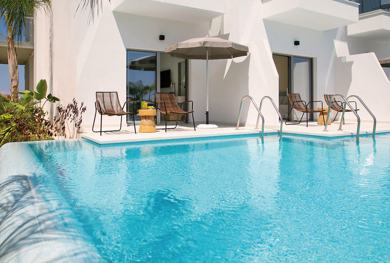 - 21-25 qm, Doppel, Superior, Erdgeschoss, Poolblick, Doppelbett (Kingsize), Schlafsessel, bodengleiche Dusche, WC, Bademantel, Badeslipper, Haartrockner, Mini-Kühlschrank, Safe, TV, Wasserkocher, Espressomaschine, Kaffee/Tee, Terrasse (möbliert), direkter Poolzugang, Gemeinschaftspool, Kopfkissen-Menü, bei Ankunft im Zimmer Obst, Wasser