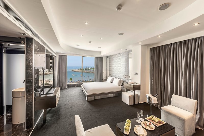 - 41-45 m2, rodiny, so spojovacími dverami, výhľad na more, 2 oddelené spálne, 2 samostatné postele, 1 manželská posteľ (king size), vaňa, WC, župan, papuče, sušič vlasov, klimatizácia, kúrenie, minibar za poplatok , trezor, TV, rýchlovarná kanvica, káva/čaj, balkón (zariadený)