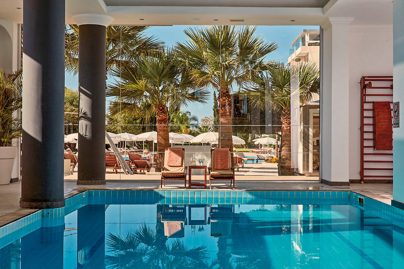 More a pobrežie Národného parku Cape Greco máte pri nohách! Hotel sa nachádza na skalnatej plošine a ponúka jedinečný panoramatický výhľad na tento stredomorský raj. Pláž je vzdialená 5 minút chôdze a potom sa môžete ponoriť do čistej vody!Vaše výhody: Veľký bazén