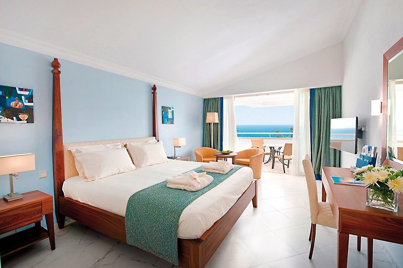 - 26-30 qm, Doppel, für Erwachsene ab 18 Jahre, Superior, Meerblick, Poolblick, Doppelbett (Kingsize), Badewanne, WC, Bademantel, Badeslipper, Haartrockner, Klimaanlage, Heizung, Mini-Kühlschrank, Safe, TV, Wasserkocher, Kaffee/Tee, Balkon (möbliert)