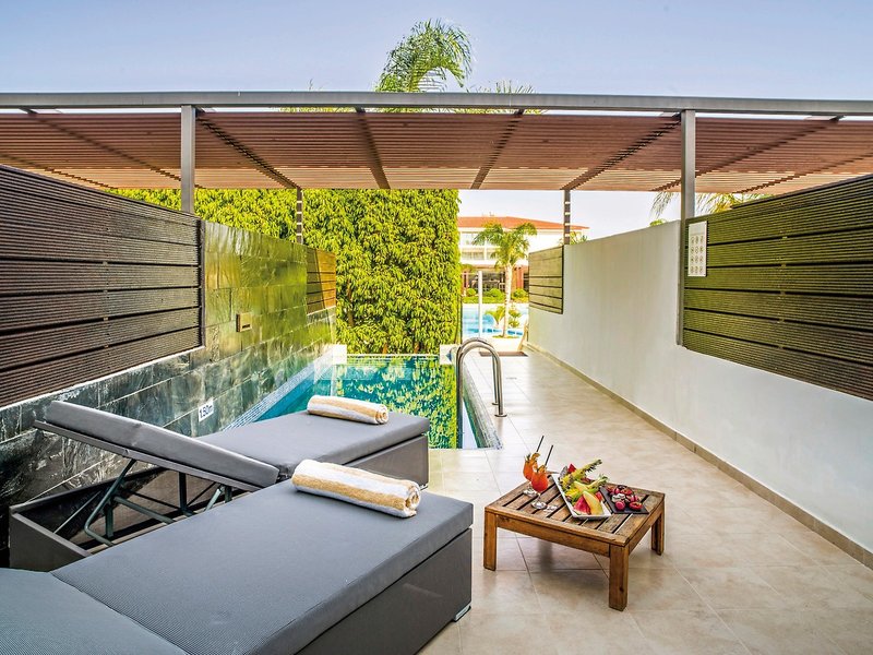 - 31-35 qm, Juniorsuite, für Erwachsene ab 18 Jahre, Poolblick, kombinierter Wohn-/Schlafraum, Sitzecke, Doppelbett, Badewanne, bodengleiche Dusche, WC, Bademantel, Badeslipper, Haartrockner, Klimaanlage, Heizung, Mini-Kühlschrank, Safe, TV, Wasserkocher, Kaffee/Tee, Terrasse (möbliert), Plunge Pool