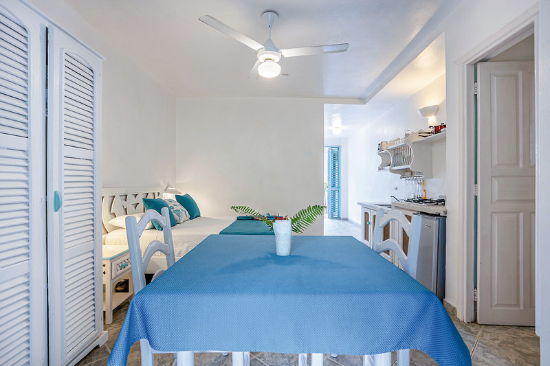 - 36-40 qm, Studio, Gartenblick, kombinierter Wohn-/Essraum, Dusche oder Badewanne, WC, Haartrockner, Klimaanlage, Safe, TV, Küche, Gas-/E-Herd (2 Kochplatten), Kühlschrank, Terrasse (möbliert)