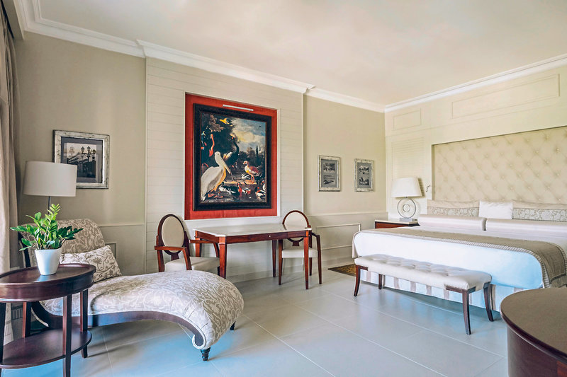 - 31-35 qm, Suite, Poolseite, Poolblick (direkt), Bettwäsche, Handtücher und Matratzen aus 100% Bio-Baumwolle, Dusche, Whirlwanne, WC, Bademantel, Badeslipper, Haartrockner, Kosmetikspiegel, Klimaanlage, Ventilator, Minibar, Auffüllung regelmäßig, Softdrinks, Bier, Wasser, Safe, Bügelbrett, Bügeleisen, TV, Kaffee/Tee, Terrasse (möbliert), direkter Poolzugang, Gemeinschaftspool, Butlerservice, 24-h-Zimmerservice, Concierge-Service