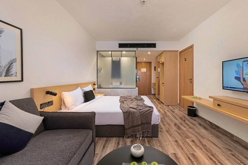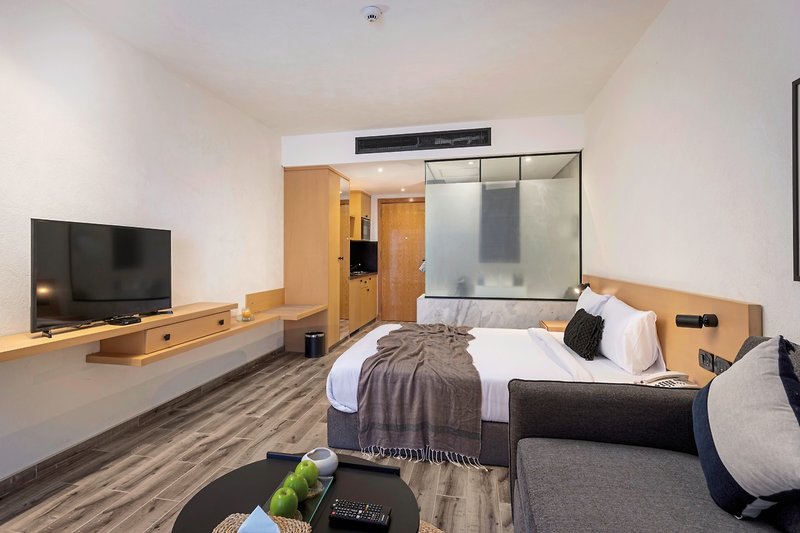 - 31-35 qm, Studio, Premium, Doppelbett (Kingsize), Dusche, Bademantel, Haartrockner, Klimaanlage, Minibar kostenpflichtig, Safe, TV, Kochnische, Gas-/E-Herd, Wasserkocher, Mikrowelle, Kaffee/Tee, Spülbecken, Balkon oder Terrasse (möbliert)