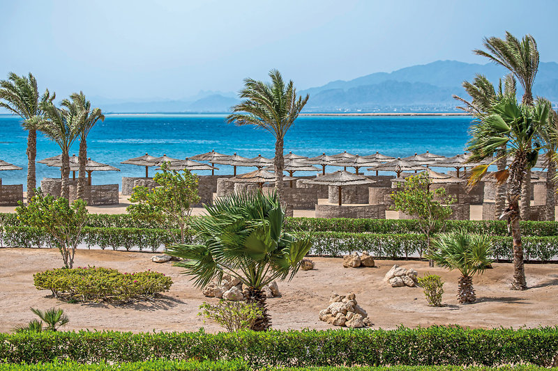 - Sandstrand: leicht abfallend, gehört zur Anlage, ca. 400 m lang, von der Anlage getrennt durch Promenade, Sonnenschirme, Liegen, Strandtuch/Badetuch