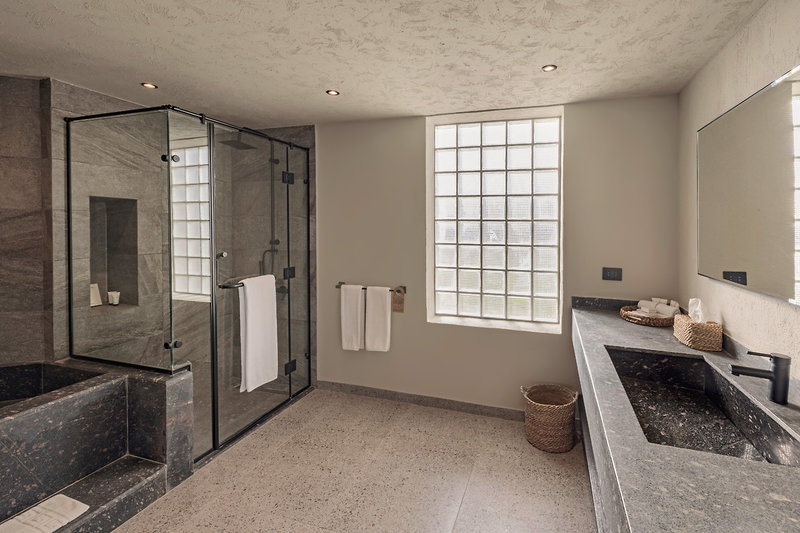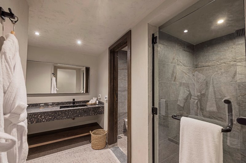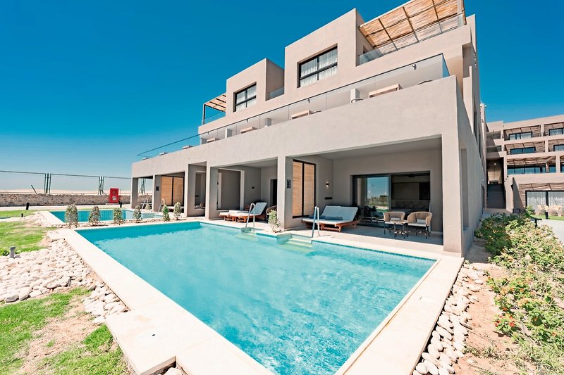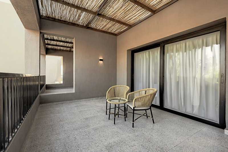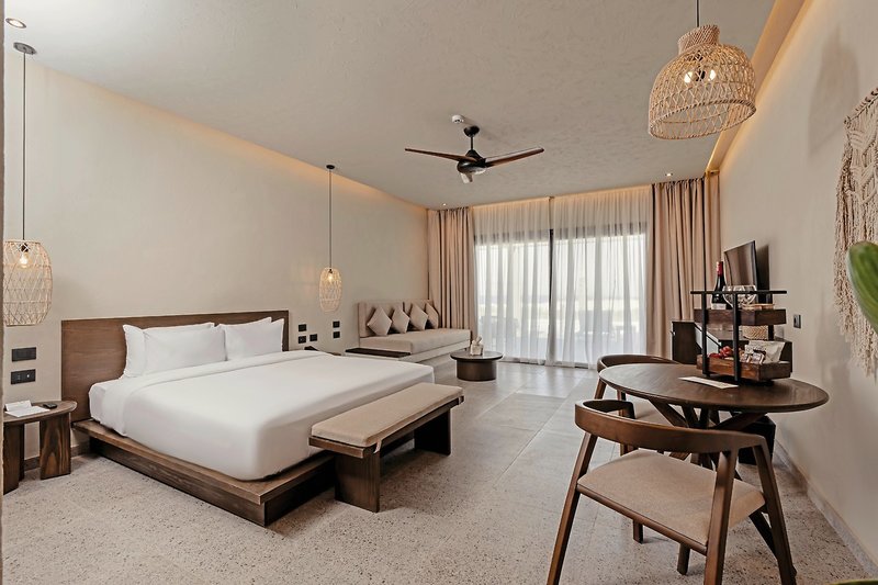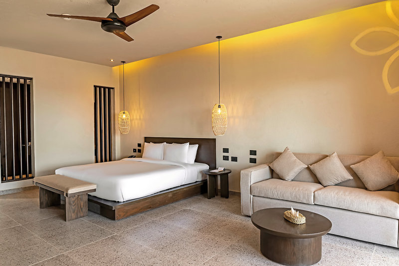 - 51-60 qm, Juniorsuite, Gartenblick, Doppelbetten (1 Kingsize oder 1 Twin), Dusche oder Badewanne, Haartrockner, Kosmetikspiegel, Klimaanlage, Minibar kostenpflichtig, Safe, TV, Kaffee/Tee, Terrasse (möbliert), direkter Poolzugang, Gemeinschaftspool