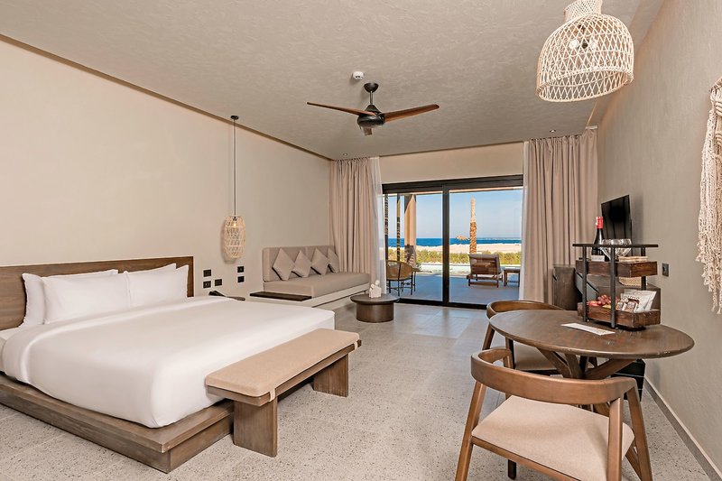 - 71-80 qm, Suite, ohne Verbindungstür, Strandlage, Meerblick (zum Teil seitlich), separates Schlafzimmer, separater Wohnraum, 1 Doppelbett (Kingsize), Sofabett, Dusche oder Badewanne, Haartrockner, Kosmetikspiegel, Klimaanlage, Minibar kostenpflichtig, Safe, TV, Kaffee/Tee, Terrasse (möbliert), direkter Poolzugang, Gemeinschaftspool