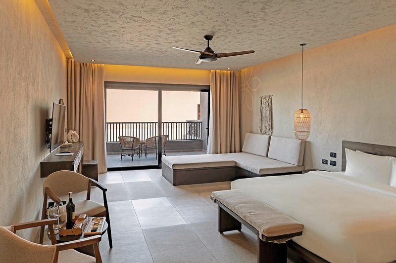- 51-60 m², Junior Suite, Výhľad na more (čiastočný bočný výhľad), Manželská posteľ, Sprcha alebo vaňa, Fén, Kozmetické zrkadlo, Klimatizácia, Minibar (za poplatok), Trezor, TV, Káva/čaj, Terasa (zariadená), Priamy prístup k bazénu, Spoločný bazén
