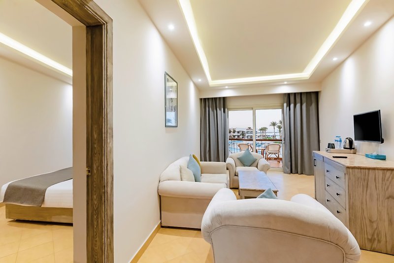 - 61-70 qm, Juniorsuite, mit Zustellbett, Gartenblick, Poolblick, Sitzecke, Doppelbetten (1 Kingsize oder 1 Twin), Dusche, Haartrockner, Klimaanlage, Minibar kostenpflichtig, Safe, TV, Wasserkocher, Kaffee/Tee, Balkon oder Terrasse (möbliert)