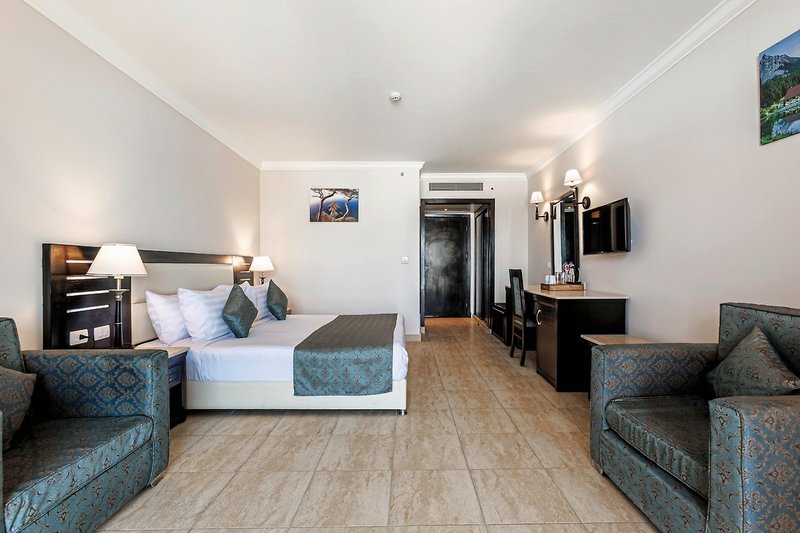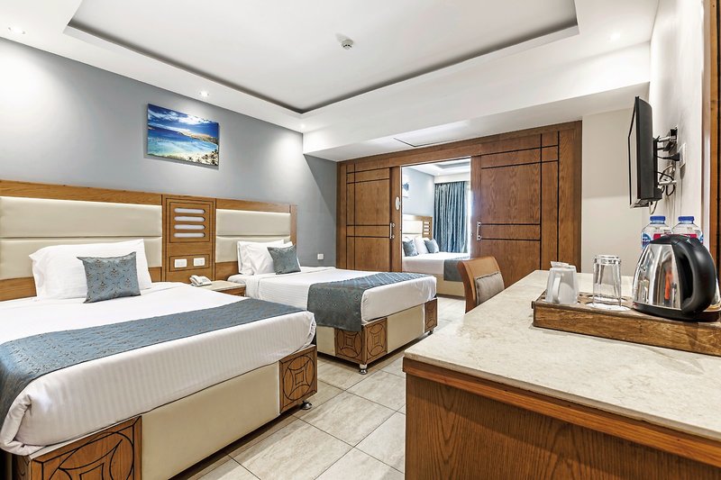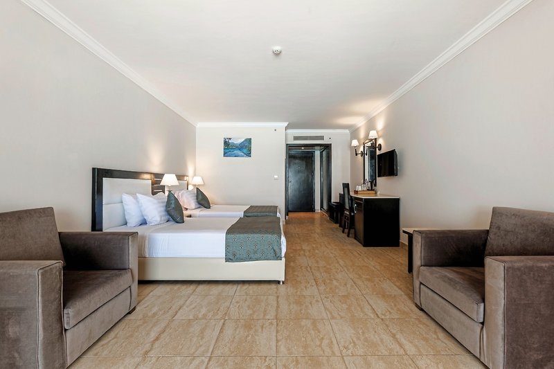- 46-50 qm, Doppel, Sitzecke, Doppelbetten (1 Doppel- oder 2 Einzelbetten), Dusche, Haartrockner, Klimaanlage, Minibar, Auffüllung bei Anreise, Softdrinks, Wasser, Safe, TV, Kaffee/Tee, Terrasse (möbliert), direkter Poolzugang, Gemeinschaftspool