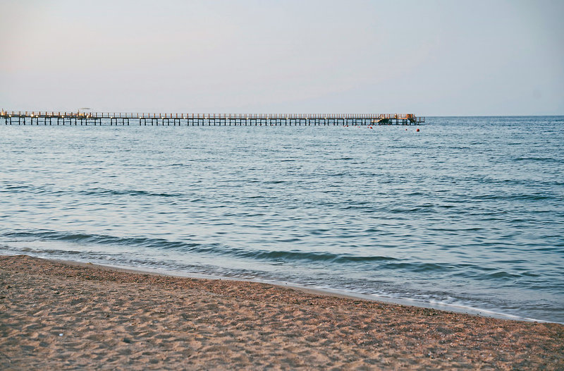 - Piesočnatá pláž: prístup cez kúpacie mólo, slnečníky, ležadlá