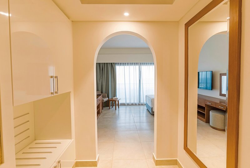 - 31-35 qm, Doppel, Superior, Gartenblick, Poolblick oder seitl. Meerblick, Doppelbetten (1 Doppel- oder 2 Einzelbetten), bodengleiche Dusche, Bidet, Haartrockner, Kosmetikspiegel, Fliesen, Klimaanlage, Minibar, Safe, TV (Smart-TV), Wasserkocher, Kaffee/Tee, Balkon oder Terrasse (möbliert), bei Ankunft im Zimmer Wasser