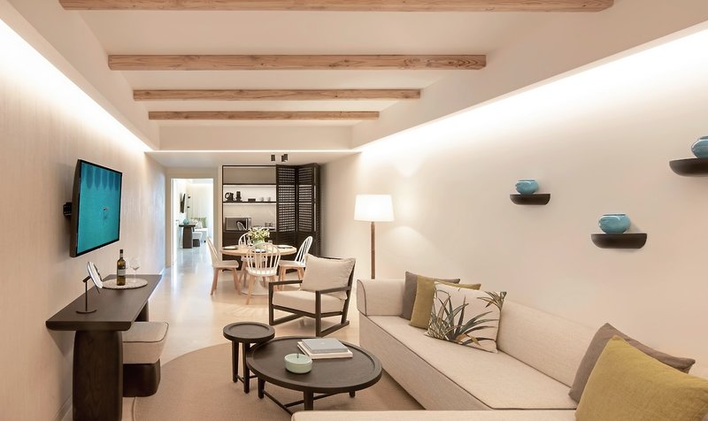 - 71-80 qm, Superior, Gartenblick, renoviert (2020), 2 separate Schlafzimmer, kombinierter Wohn-/Schlafraum, 2 Bäder, Badewanne, WC, Bademantel, Badeslipper, Haartrockner, Kosmetikspiegel, Klimaanlage, individuell regulierbar, Minibar, Auffüllung täglich, Softdrinks, Tischwein, Bier, Säfte, Wasser, Safe, 2 TVs (Sat-TV, Flachbildschirm), Kaffeemaschine, Kühlschrank, Balkon oder Terrasse (möbliert), direkter Poolzugang, Privatpool, hochwertige Badartikel, bei Ankunft im Zimmer Snacks