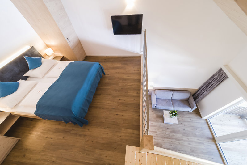 Suite auf zwei Ebenen mit einer Treppe zur Mansarde.