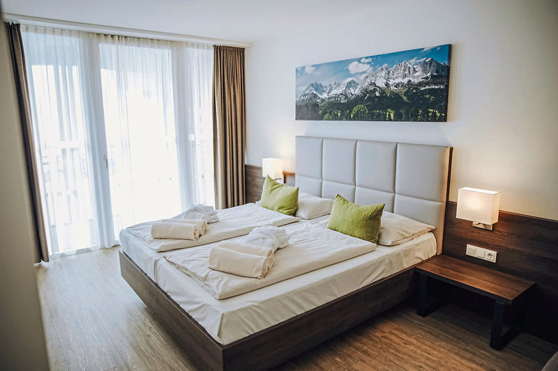 - 26-30 qm, Doppel, Neubau, Bergblick, Schreibtisch, Dusche, Haartrockner, Mini-Kühlschrank, Safe, TV, Balkon, Stepper, Sprossenwand, Yogamatte, TRX-Bänder, 2 Kurzhanteln, Faszienrolle, Bluetooth Lautsprecher