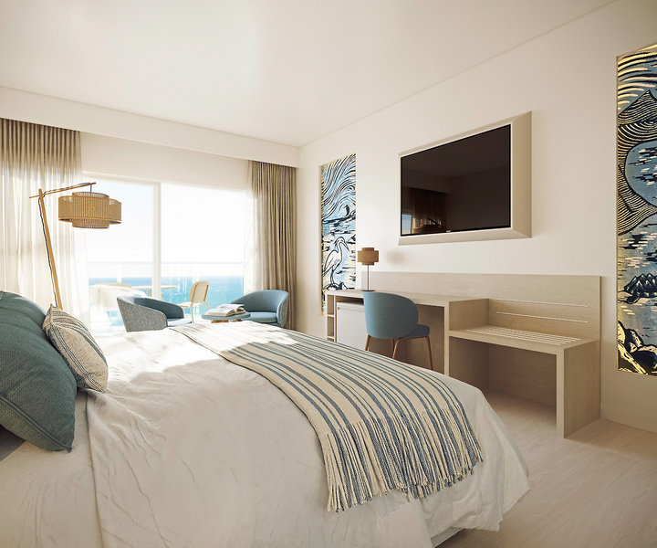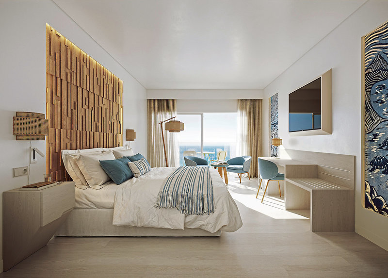 - 36-40 m2, junior suite, výhľad na more, 1 kúpeľňa, sprcha, WC, župan, papuče, sušič vlasov, klimatizácia, centrálne ovládané, minibar za poplatok, trezor, 1 TV (satelitná TV, plochá obrazovka), WiFi, kávovar, balkón alebo terasa, vankúšové menu, oddelená registrácia a odhlásenie, vstup do VIP zóny, osuška pri bazéne