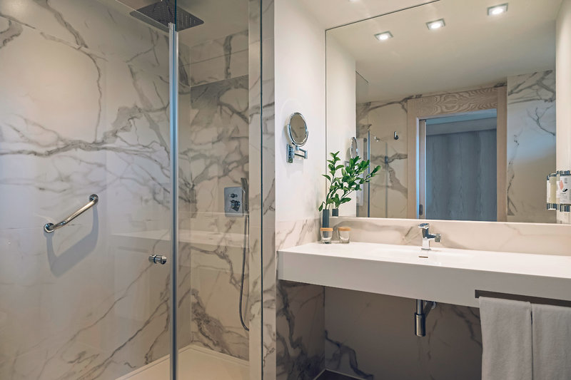 - 51-60 qm, Suite, Meerblick, separater Wohnraum, 1 Bad, Dusche, Badewanne, WC, Bademantel, Haartrockner, Klimaanlage, zentral gesteuert, Minibar kostenpflichtig, Safe, 1 TV (Sat-TV, Flachbildschirm), WLAN, Kaffeemaschine, Balkon oder Terrasse (möbliert), Kopfkissen-Menü, separater Check-in & Check-out, Zutritt zum VIP-Bereich