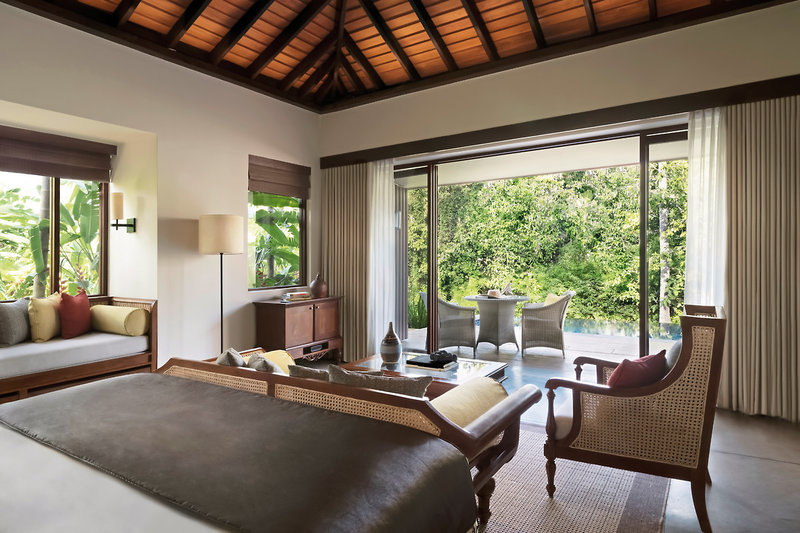 - 91-100 qm, Villa, Gartenblick, kombinierter Wohn-/Schlafraum, Badewanne, Regendusche, Haartrockner, Klimaanlage, Ventilator, Minibar kostenpflichtig, Safe, TV, WLAN, Wasserkocher, Espressomaschine, Kaffee/Tee, Terrasse (möbliert), Privatpool