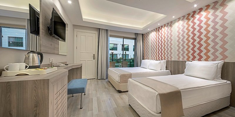 - 31-35 m², rodinná izba, s prepojovacími dverami, výhľad do krajiny, 2 samostatné spálne, jednolôžko, manželská posteľ alebo 1 manželská posteľ a 2 samostatné postele, poschodová posteľ, 1 kúpeľňa, sprchovací kút, WC, papuče, fén, klimatizácia, minibar (pravidelne dopĺňaný), nealkoholické nápoje, minerálna voda, voda, trezor, TV (satelitná TV), rýchlovarná kanvica, káva/čaj, balkón