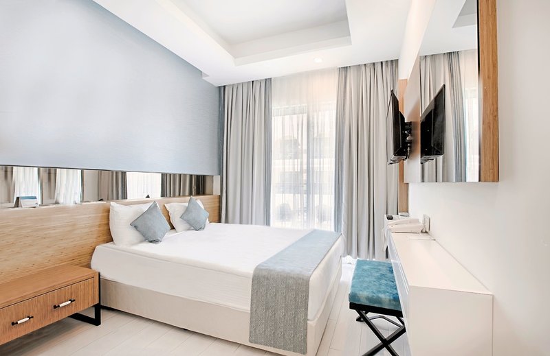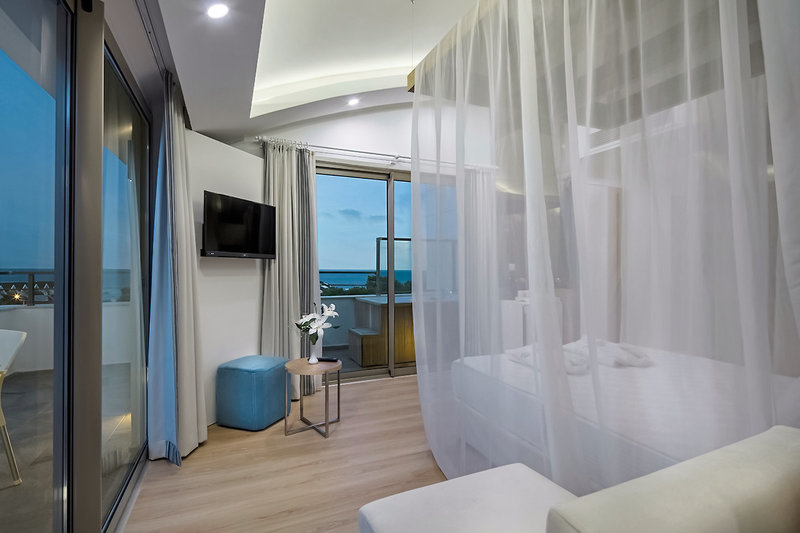 - 21-25 qm, Suite, Meerblick, Doppelbett, 1 Bad, Dusche, WC, Badeslipper, Haartrockner, Klimaanlage, Minibar, Auffüllung regelmäßig, Softdrinks, Mineralwasser, Wasser, Safe, TV (Sat-TV), Wasserkocher, Kaffee/Tee, Terrasse (möbliert), Whirlpool