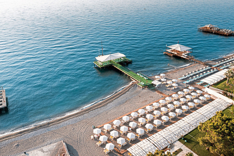 - Kiesstrand: ca. 80 m lang, von der Anlage getrennt durch Straße, Sonnenschirme, Liegen, Strandtuch/Badetuch, Badesteg (Liegen, Schirme)