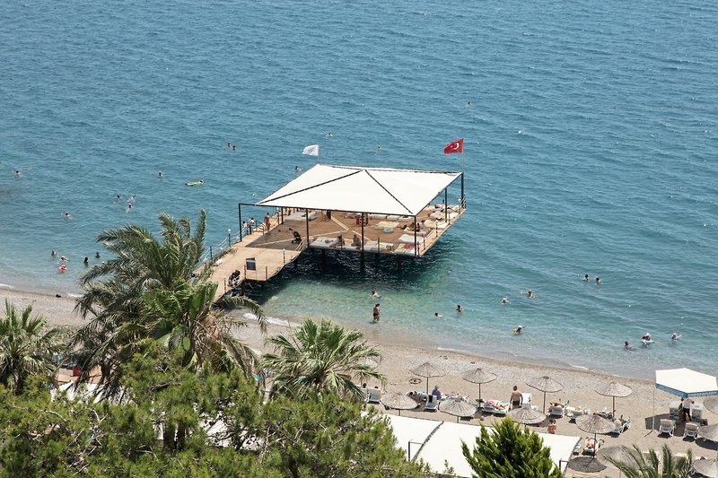 - Badeplateau: gehört zur Anlage, Zugang über Badesteg, Sonnenschirme, Liegen